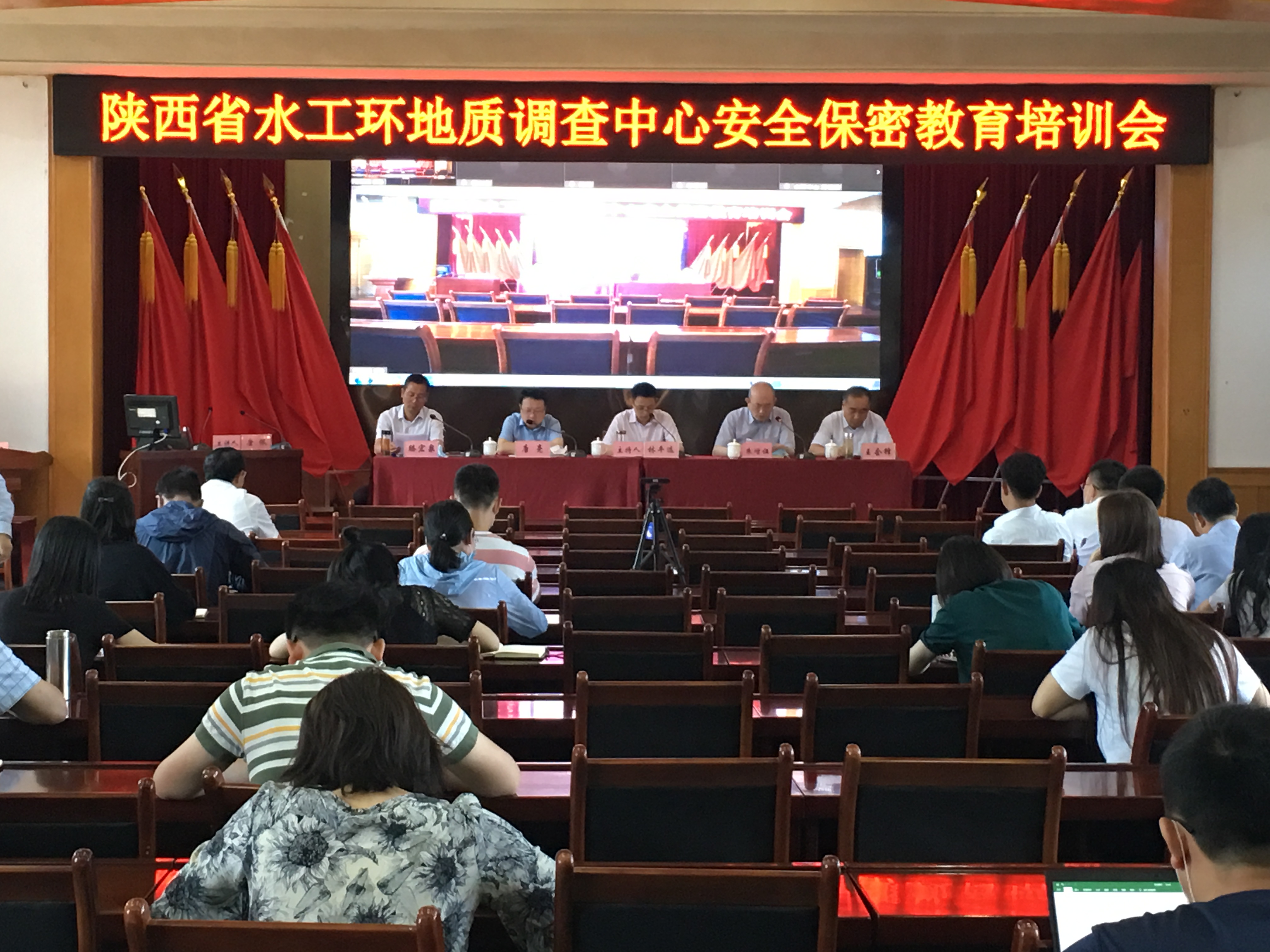 在全院上下認(rèn)真學(xué)習(xí)貫徹習(xí)近平總書記來陜考察重要講話精神,統(tǒng)籌推進(jìn)疫情防控和野外生產(chǎn)工作的新形勢下,5月27日,中心根據(jù) “安全生產(chǎn)月”“保密宣傳月”活動(dòng)安排,舉行2020年安全生產(chǎn)保密教育培訓(xùn)會(huì)議,中心領(lǐng)導(dǎo)班子出席會(huì)議,全體干部職工參加了會(huì)議,野外項(xiàng)目一線人員以觀看視頻方式參會(huì)。會(huì)議由中心副主任林平選主持。